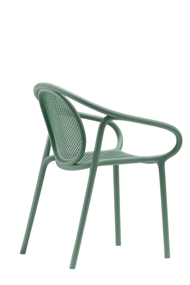 Ugostiteljski stolac Remind 3735 oponaša meke, zavojite linije drvenih stolica s kraja 19. stoljeća. Time stolac stvara emocionalnu poveznicu s tradicijom, uz zadržavanje modernog karaktera, udobnosti i lakoće. Napravljen je od izrdžljivog polipropilena u boji prema odabiru korisnika.