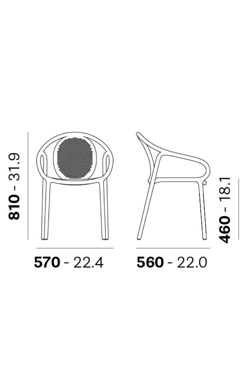 Ugostiteljski stolac od polipropilena prikladan za unutarnju i vanjsku upotrebu.