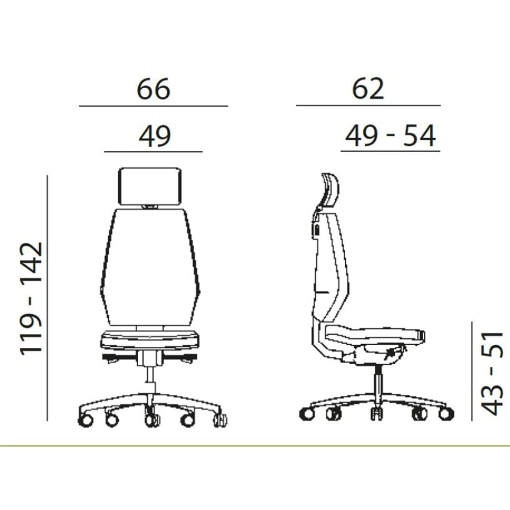 - u standardnoj opremi nalazi se petokraka baza promjera 66 cm dostupna u crnoj plastici s kotačima promjera 60 mm prikladnima za sve vrste podova