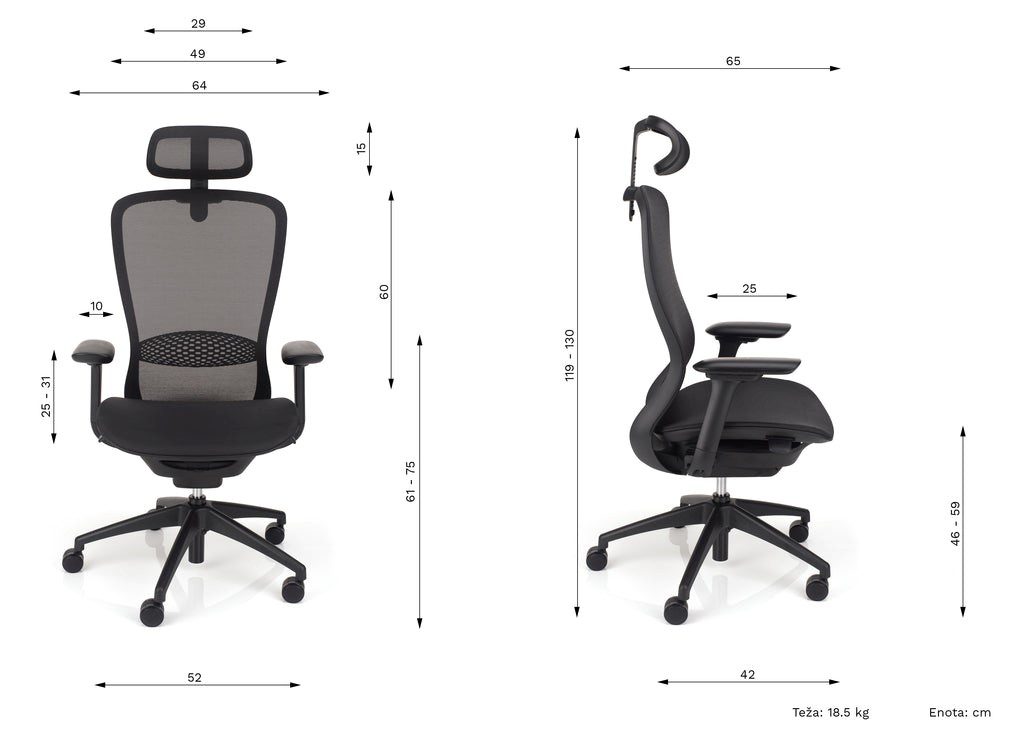 - ergonomski dizajniran mrežasti naslon u crnoj boji